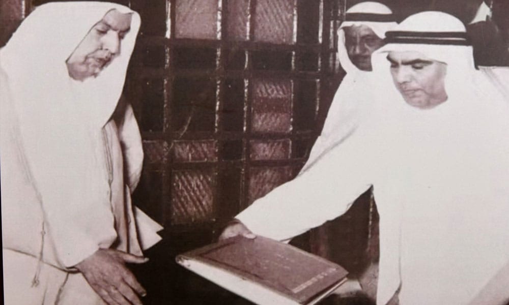 رئيس المجلس التأسيسي يسلم امير دولة الكويت الدستور الكويتي