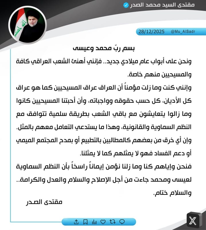 تغريدة جديدة للصدر – عاجل