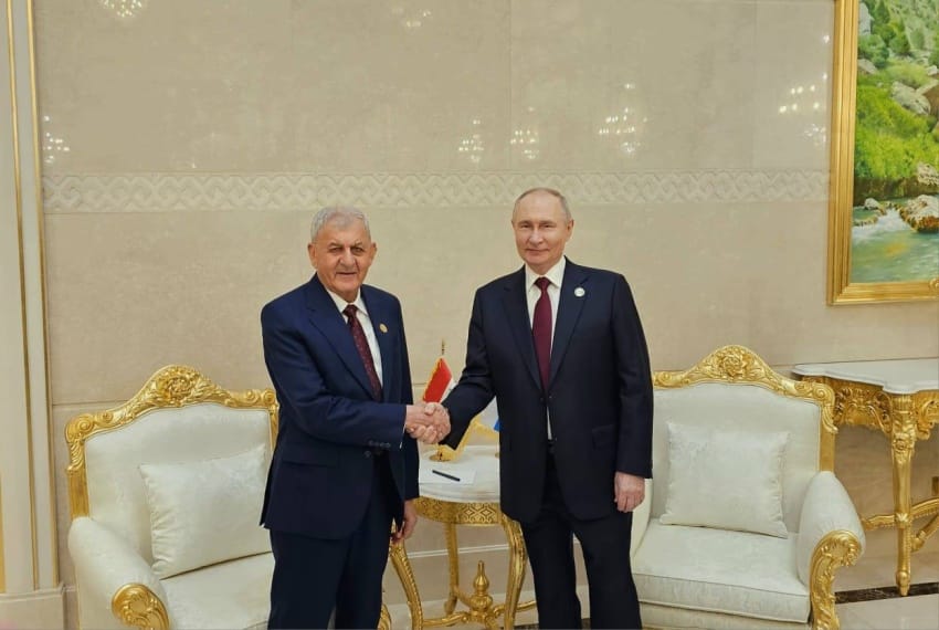 بغداد أوبزرفر – التقى فخامة رئيس الجمهورية الدكتور عبد اللطيف جمال رشيد، اليوم الجمعة 12 كانون الأول 2025، في العاصمة التركمانستانية عشق آباد، رئيس جمهورية روسيا الاتحادية السيد فلاديمير بوتين، وذلك في إطار أعمال منتدى العام الدولي للسلام والثقة. واستعرض