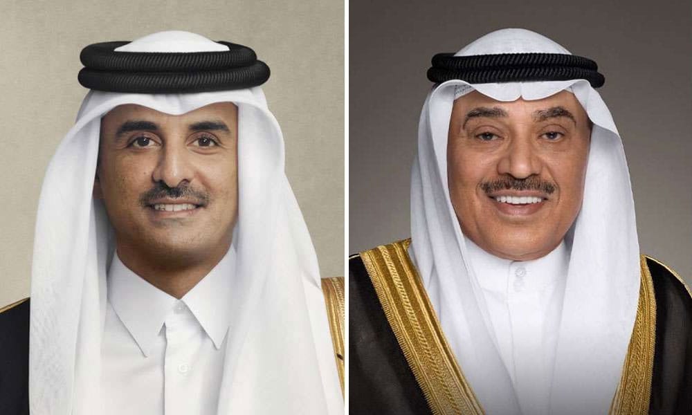 سمو ولي العهد الشيخ صباح خالد الحمد الصباح وصاحب السمو الأمير الشيخ تميم بن حمد آل ثاني أمير دولة قطر
