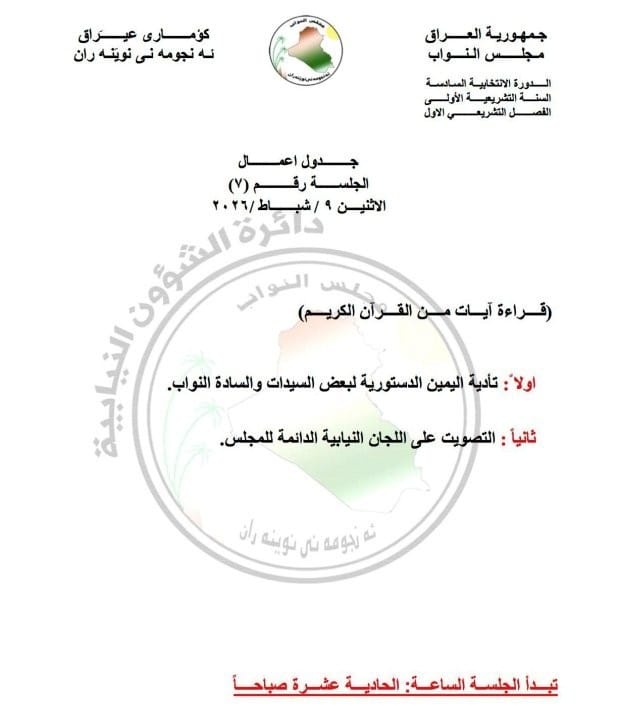 بغداد أوبزرفر -مجلس النواب ينشر جدول أعمال جلسة الإثنين المقبل