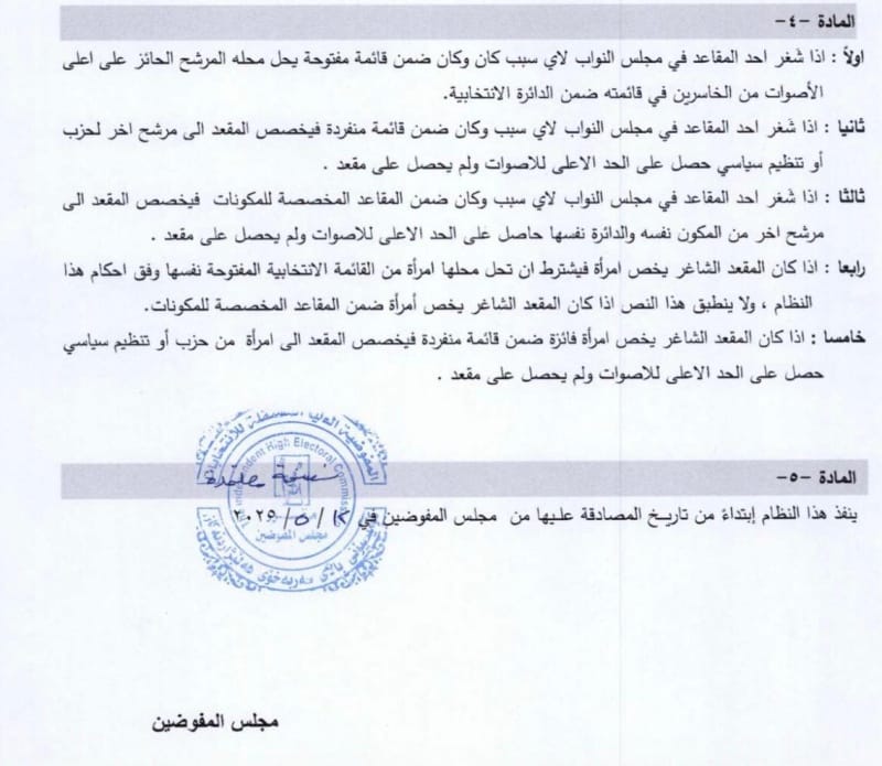 المفوضية تنشر المادة الرابعة من قرار مجلس المفوضين الخاص بشغر أحد مقاعد البرلمان