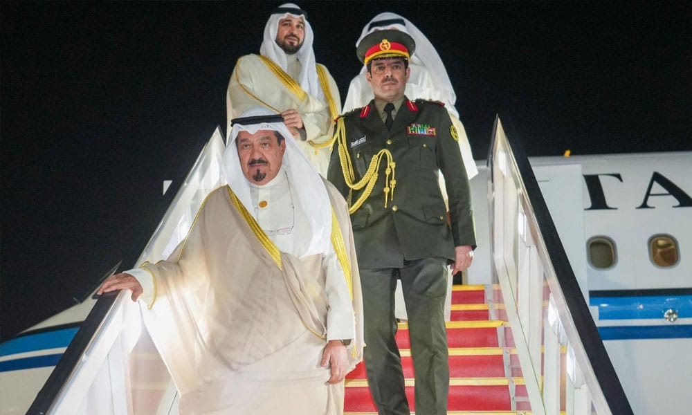 وكان في استقبال سموه على أرض المطار النائب الأول لرئيس مجلس الوزراء ووزير الداخلية الشيخ فهد يوسف سعود الصباح ورئيس ديوان رئيس مجلس الوزراء عبدالعزيز دخيل الدخيل ووزير الدفاع الشيخ عبدالله علي عبدالله السالم الصباح وكبار المسؤولين في الدولة.