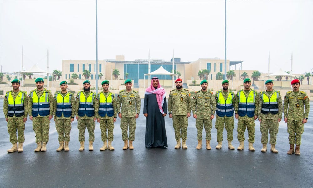 صورة جماعية تضم نائب رئيس الحرس الوطني الشيخ فيصل نواف الأحمد الصباح ومنتسبي الحرس الوطني
