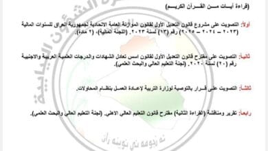 جدول البرلمان لجلسة يوم الأحد المقبل