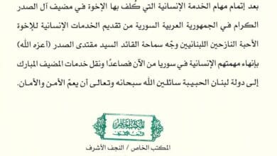 الصدر يوعز بعد اجتماعه بالقائمين على مضيف آل الصدر في لبنان ببذل المزيد من الجهود خدمة للنازحين