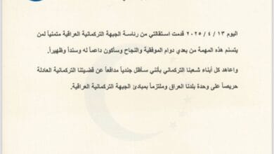 حسن توران يقدم استقالته من رئاسة الجبهة التركمانية (وثيقة)