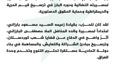 تحالف العزم يهنئ الحزب الديمقراطي الكردستاني بذكرى تأسيسه الـ79