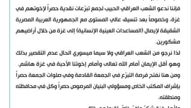 الصدر يدعو الشعب العراقي لجمع تبرعات نقدية حصراً لغزة