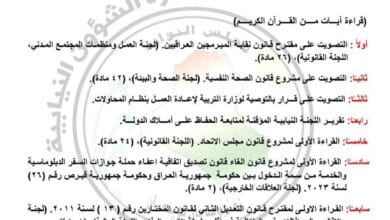 جدول أعمال جلسة البرلمان يوم غد الأربعاء
