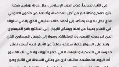 سطام أبو ريشة: الحزب الإسلامي هو المدافع عن السنة منذ 2003 وحتى الآن