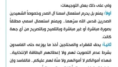 3 توجيهات من الصدر بشأن الحملة الانتخابية للمرشحين – عاجل