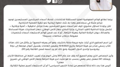 المفوضية تعلن أحدث إحصائية للمرشحين المبتعدين والعائدين للانتخابات