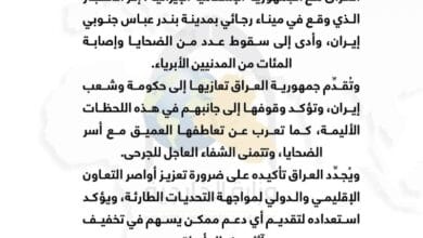 العراق يعزي إيران بضحايا انفجار ميناء رجائي