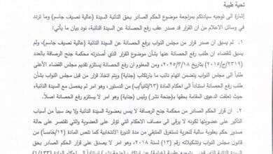 البرلمان: حكم النائبة عالية نصيف لا يلغي عضويتها ولا يمنع ترشحها